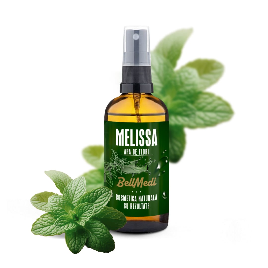 Apa de melisă este o apă florală (hidrolat) naturală obținută din melisă. Nu conține conservanți sau substanțe sintetice. Este potrivită pentru toate tipurile de piele, în special pentru piele iritată, piele cu eczeme, piele uscată, piele matură și piele sensibilă. Are o aromă delicată florală, cu note proaspete ușor citrice.