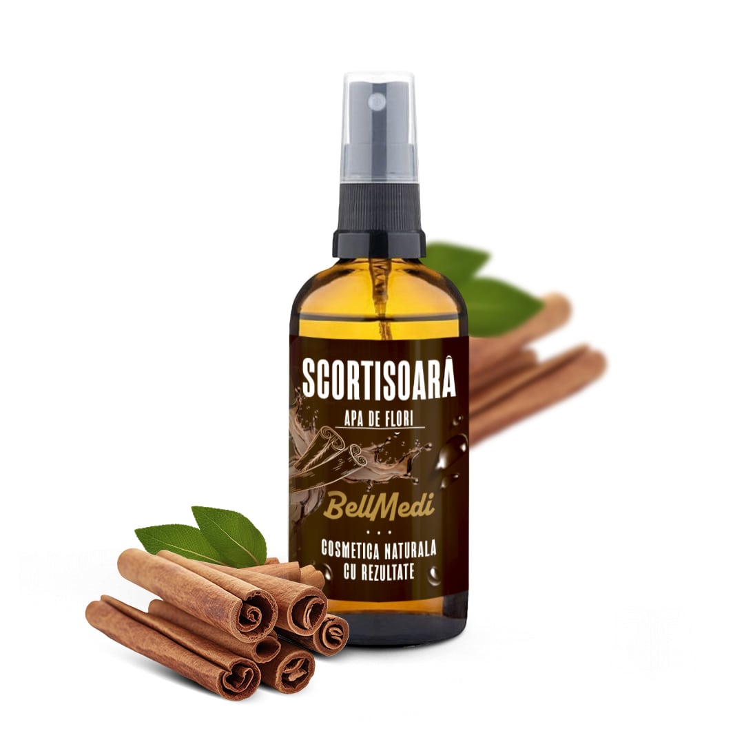 Apa de scorțișoară este o apă florală (hidrolat) naturală obținută prin distilare cu abur din arborele de scorțișoară Ceylon. Nu conține conservanți sau substanțe sintetice. Este potrivită în special pentru ten gras, ten mixt și ten cu tendință acneică, deoarece ajută la menținerea pielii curate și proaspete.