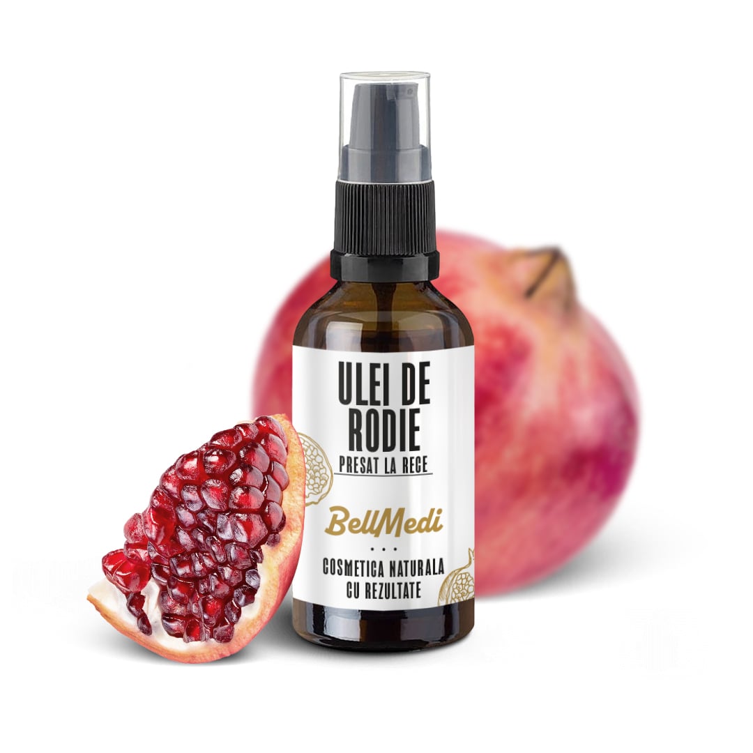 Uleiul de rodie este un ulei extravirgin, nerafinat, 100% monocomponent, obținut prin presare la rece din semințe de rodie. Este potrivit pentru piele sensibilă, ten uscat, ten gras și ten normal, inclusiv pentru pielea cu tendință de îmbătrânire prematură.